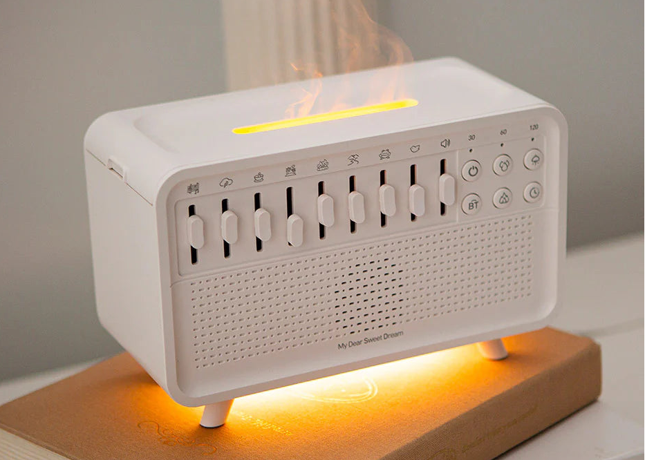 Set the mood with two lights, each with adjustable levels. Just fill the tank with water, optionally add a few drops of essential oil, and enjoy a calming scented mist.